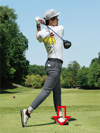 ドライバーはアイアンよりもボールを左に置きますし、バックスイングの助走を大きくして飛ばしのパワーを蓄える必要があります。あとはボールに向かってパワーをマックスに持っていくつもりでクラブを振り下ろし、ボールを打ち抜くだけで、本来はインパクト以降のフォロースルーやフィニッシュは結果にすぎません。
