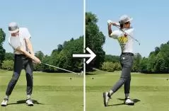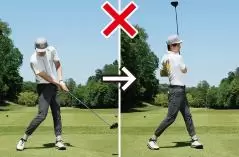それにドライバーは振り遅れやすいクラブでもあります。飛ばそうとしてカラダの動きが過剰になると余計に振り遅れてフェースの芯に当たらないし、結果的にクラブがスムーズに振り切れず、フィニッシュの体勢が崩れやすい。コレがキレイなスイングで振れなくなってしまう要因です。