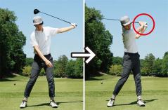 右手が利き手の人はどうしても右手に力が入りやすくて、とくに飛距離が欲しいドライバーでは右手が勝ちすぎてしまいやすい。右手が左手の邪魔をしないように、つまり右手に力が入りすぎないように左手リードで振るのがベターということです。