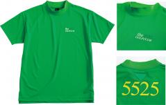 バックプリントに「5525」の文字が大きくあしらわれたモックネックシャツは、差し色のイエローがアクセント。
