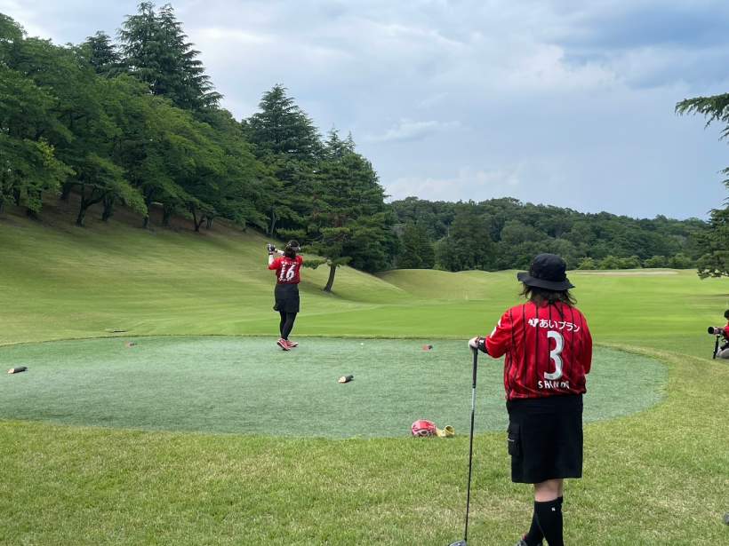お揃いのサッカーのユニフォームを着て参加する女性の姿も。ドレスコーデを合わせ、自分たちらしいウェアを着ることも今回の楽しみ方の一つ。前日に、何着ようかな〜と考える時間からゴルフは始まっていると言っても過言ではないのが女性ゴルファーたちの本音。