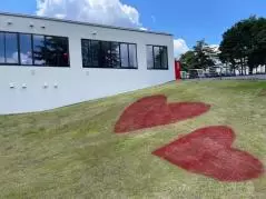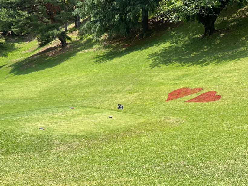 ゴルフ場の至る所に、赤いハートを発見。もちろんこれも、このイベントだけの特別なもの。練習グリーンやティグラウンドには大きいサイズのハートが。ティショットの撮影時には、SNS映えすると参加者たちからも大好評。