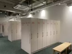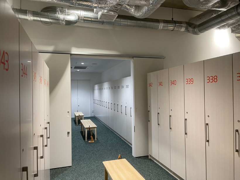 とにかく広いのが印象的。女性に人気のゴルフ場ということもあり、男性エリアの部分を借りて拡大できるようになっている。普通は男性の利用者の方が多くレディースロッカーは少しコンパクトなゴルフ場がほとんど。すごい、の一言。