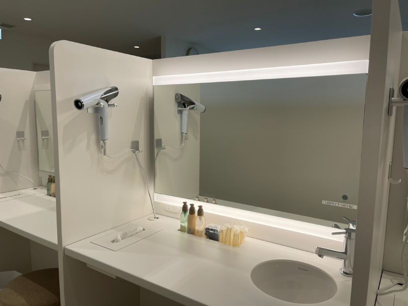 LEDライト付きのドレッサーにも全てが「リファ」のドライヤー付き。ヘアアイロンも置いてあるので、ゴルフ後の身だしなみも完璧。なんて贅沢な空間なのだろうか。