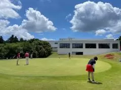 レッスンは、レンジ、パット、アプローチと3つに分かれ全体的にフォロー。ゴルフ場にいるレッスンプロの先生に教えてもらいながら、「当たったー!」と喜ぶ初心者ゴルファーからグリーンの読み方を聞くベテランゴルファーまでも発見。参加者同士でお互いのショットを撮り合ったり、教え合ったりして楽しんでいた。