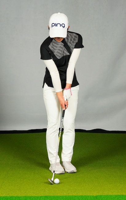 神田 お手本は渋野日向子プロのアプローチです。私的には大きく振らないし、真っすぐ立てると思ってこうしています。