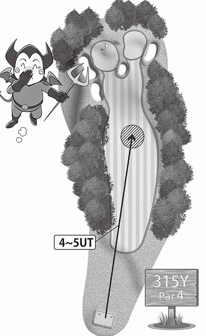 短いパー4は油断大敵。 どこにワナが仕掛けて あるかを十分に確かめて 攻略プランを立てよう