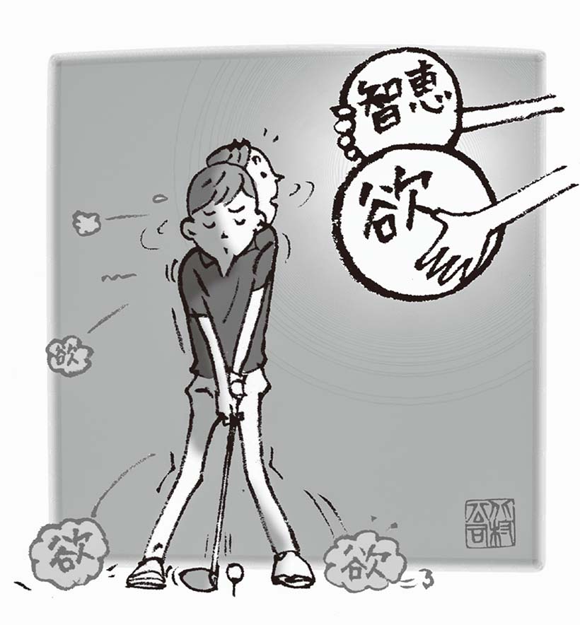 欲を得るためにどうするかというと、自分の知恵を働かせるのです。要は考え方であって、ゴルフに当てはめればドライバーで飛ばしたいときにマン振りするといった知恵のない方法で欲を手に入れようとしても成果につながりにくい。もっと軽く打つとか、芯に当てやすくするためにクラブを短く持つとか、知恵を使うことで飛ばしたい欲を満たそうという思考を持ってはいかがでしょうか。