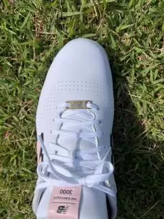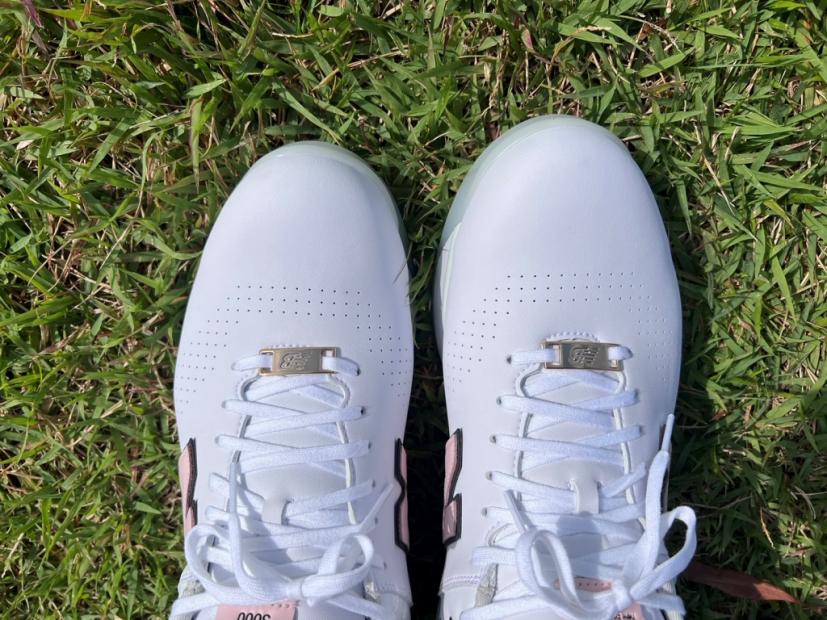 ニューバランス「FuelCell 3000」は即、欲しいモノリスト入りした。ピンク系のシューズを男性が? と思われる方もいるかもしれないが、実は普段、ナイキのスニーカー「エアフォース1」の白×ピンクを愛用している。「ピンク、いいですね」と周りのウケがよかったこともあり、それから「オジさん×ピンク」はアリなんだと認識している(笑)。それに味をしめて、男性でも使えるピンクのゴルフシューズないかな、と思っていたのだ。
