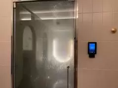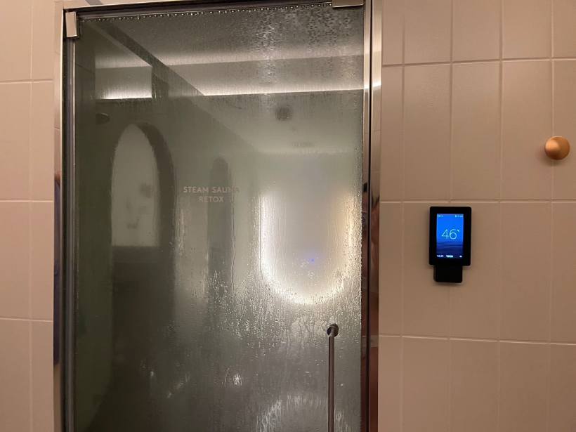 まず初めは、半個室のシャワースペースでセルフケアが堪能できるスチームサウナ RETOXにて、シャワーを使った瞑想を約5分間行った。足の指先から頭の先にかけて、ゆっくり、心地よいと感じる温度の冷たいシャワーを静かにかけ、疲れや邪気を取りカラダを癒していく。