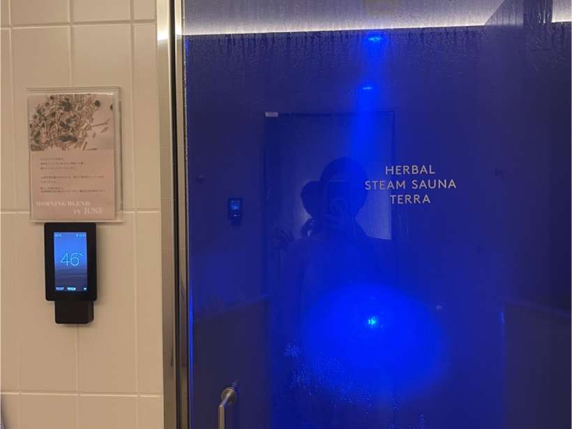2つ目の瞑想は、フレッシュなハーブの香りに包まれているハーバルスチームサウナ TERRAの中で行う、ストレッチ瞑想。むくみや冷えの改善、自律神経の調整を行うというもの。