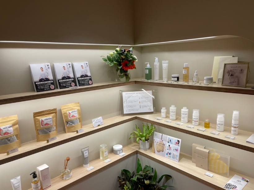 エントランス横には、スキンケア用品や、兼下さんのメンタル本も購入可能