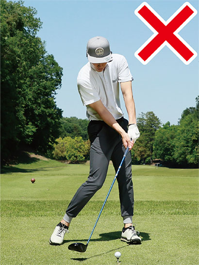 ドライバーは一番長くてヘッド体積が大きい。でも軽く感じてしまう。となると自分でクラブをコントロールしようとしがちですが、ある意味ドライバーは一番ワガママなクラブですからゴルファーの意図に反して振り遅れたり、突っ込み打ちになったりしやすい。これでは何のための練習かわからなくなってしまいますよね。