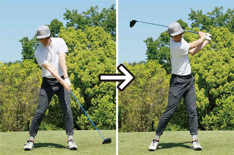 この逆素振りを繰り返すと、バックスイングでクラブをスムーズに上げていく感覚が生まれてくるはずです。