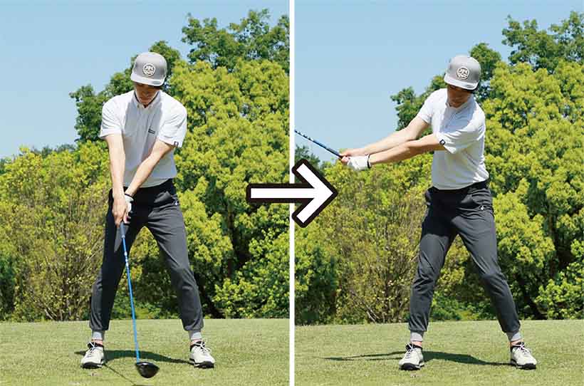 逆素振りを繰り返すとスムーズなバックスイングの感覚が生まれる