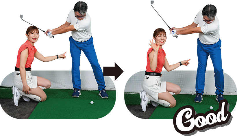 このスイングだとアプローチというよりアイアンショットに見えます。テークバックの動作を改善するだけで、ミスは確実に減らせますよ!