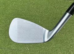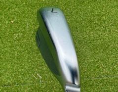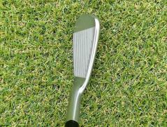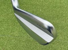 バックフェースはかなりシンプルで「i530」の文字と、薄く「FORGED」の文字が入っているだけ。もちろん飛び系には見えませんし、プロが使うマッスルバックのようなデザインでカッコ良いいです。言われなければ中空アイアンだと思わないかも。こりゃ確かに「飛び系ツアーアイアン」って感じだな~と思いました。
