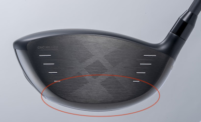 「4点集中フェース」「ギリギリ設計」は、その精密性をますます向上させて2022モデルを超える高初速化を実現。フェースは、偏肉フェースの最薄エリアの肉厚を3.3㎜から2.9㎜に薄肉化した「CNCミルド Xフェース」となり、フェースセンターのたわみを拡大させてボール初速アップに拍車をかけている。
