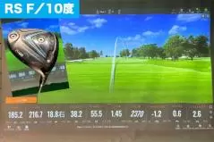 『RS MAXは1発目から、このデータが出たので「もう打たなくていいや」と思いました(笑)。しかも、この画像はフェースの下のほうで、ちょっと振り遅れ感のあるインパクトで出た結果なんです。もうちょっと当たりが良くなると、キャリーが20ヤードくらい増えてくれて、スピン量は2000前半、トータル飛距離は230台で安定していました。