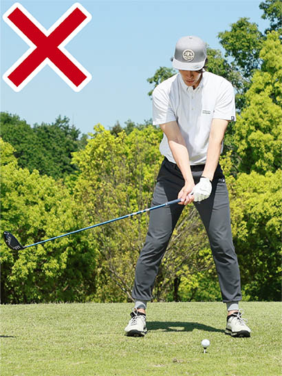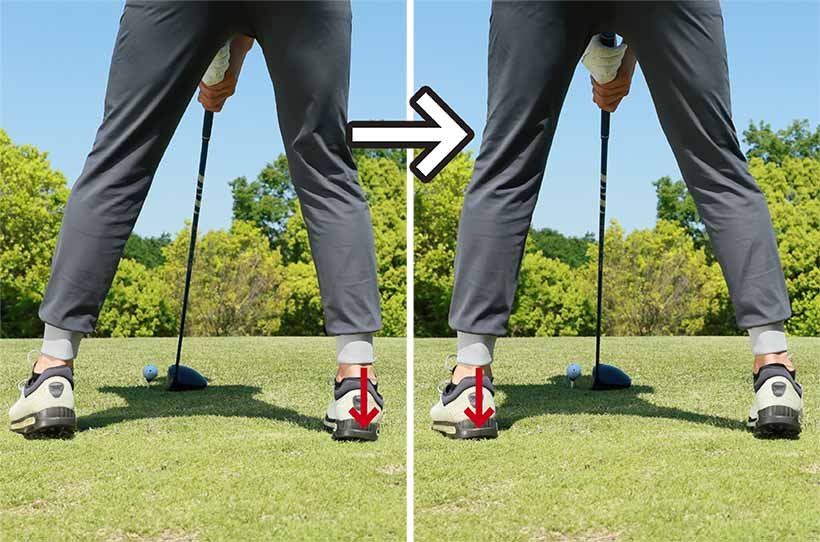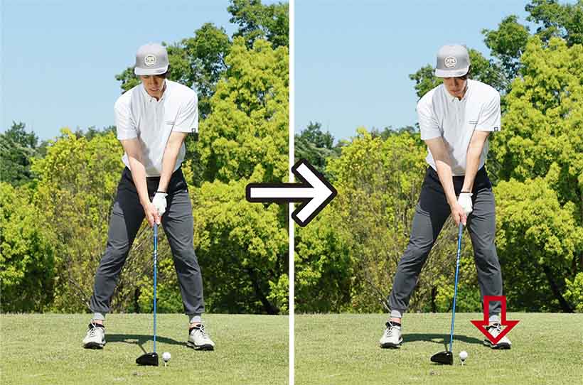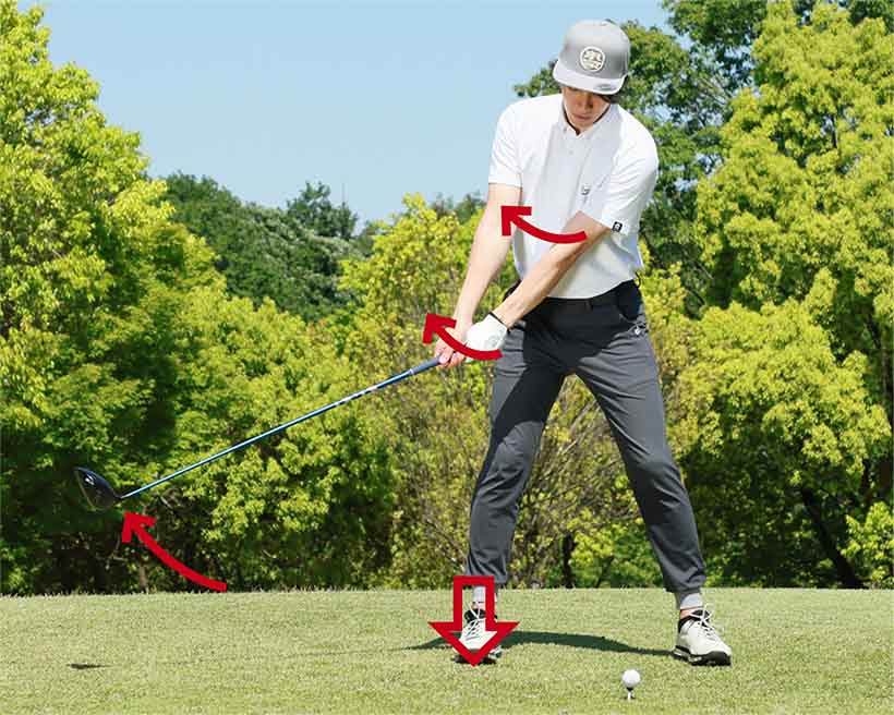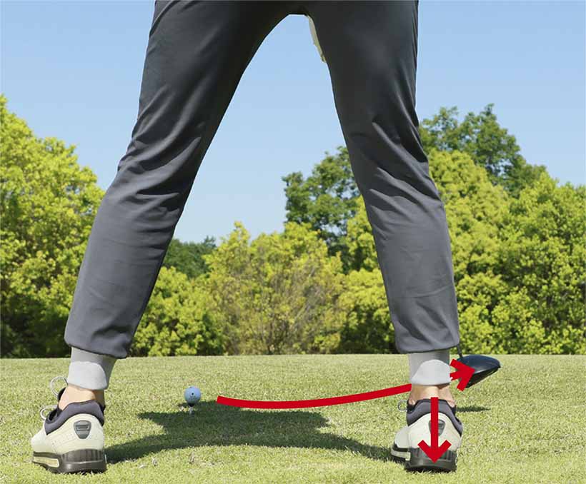 軽い足踏み感覚を取り入れるとスムーズにテークバックでき、キレイなドライバースイングが実現!