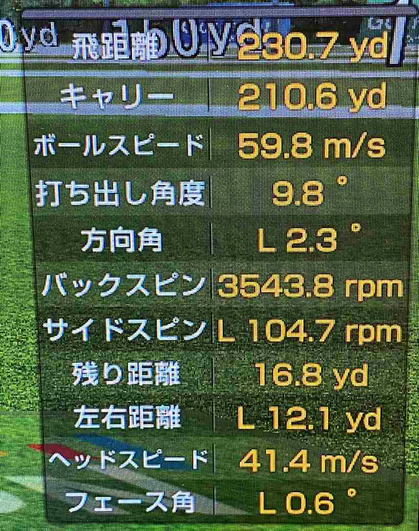 R9は、420ccの三角形状ですので、最近の460ccのような印象で違和感なく構えられます。こちらも振りやすく、ボールが上がりやすいので飛距離も出ました。打感と音は、R7よりも低いようです。