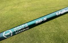 このシャフトの特性は、手元側のトルクを抑え、中間部とのトルク差をより大きくし、なめらかなフィーリングで一体感のあるシャフト挙動。先端剛性は高めてあり、より強い弾道が打てるということです。