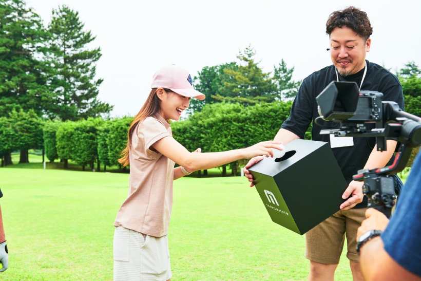 特別に設置されたこちらの”映え”ているブースは19番ホールと名付けられ、2Fから下のグリーンに向かって打つ、ワンオンチャレンジも開催された。