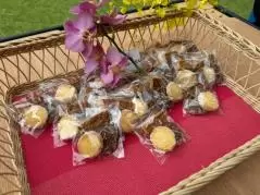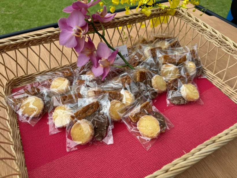 ホール間に用意されていた軽食やお菓子。スパムおにぎりやクッキーを合間にもぐもぐ。ゴルフの合間のもぐもぐタイムって、本当に幸せ。(笑)
