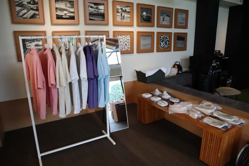 石川プロが試合で着たウェアが度々話題になるトラヴィスマシュー。カジュアルなものからフォーマルまでを取り揃えてあるため、この日も各々のスタイルを着こなしている参加者が多かった。中には、アフターパーティー前に、トラヴィスマシューからトラヴィスマシューに着替える方まで。
