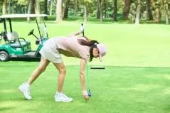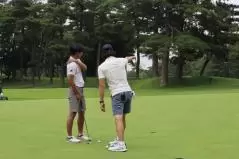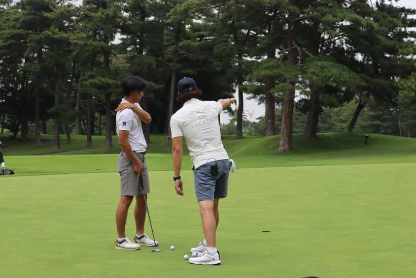 最後に、パットの練習法を伝授。参加者をグリーン内に呼び込み直接指導。内容は、参加者のみの特権にしておこう。