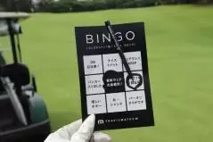 そして、私たちが一番苦戦したのがこちらのビンゴゲーム。ティショット前に作戦会議をした私たちは、それぞれ、フェアウェイキープと右OBをして…その後シャンクしてバンカーに入れ、、、ナイスワンパットでボギーを取ろう、、、なんて考えすぎて、うまくいかず、真ん中のトラヴィス着用と、トラヴィスにまつわるクイズと、バンカーインで1ビンゴのみ。(笑)