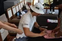参加者全員と写真撮影を行った後は、サイン会も実施。トラヴィスマシューのアイテムを握りしめた参加者が行列を作っていた。一人一人と目を合わせて、「ありがとうございます」と言う真摯な石川プロの姿に、みんなが惚れなおしていた。もちろん私も♡。