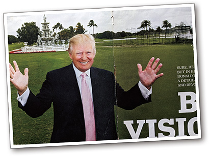 トランプ前大統領のゴルフ場ビジネス成功にもジョーの力が。成功はゴルフウィーク誌2013年3月1日号でも特集。写真はフロリダ州マイアミのトランプ・ナショナル・ドラールにて。ブルーモンスターの異名で親しまれPGAツアーで40年以上も開催コースだった。