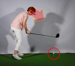 Hさんのようなダウンスイングになると必然的に上体が突っ込みます。言い換えると、頭がどんどんボールの方向に寄って行ってしまう。この動きさえなくなればテンプラになることはありません。