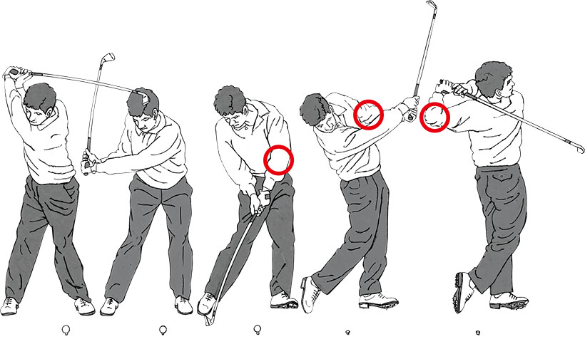 ホーガン流のスナップ動作でヘッドのリリースポイントを決めるのは、右手の動きだけでは難しいと森プロは言う。