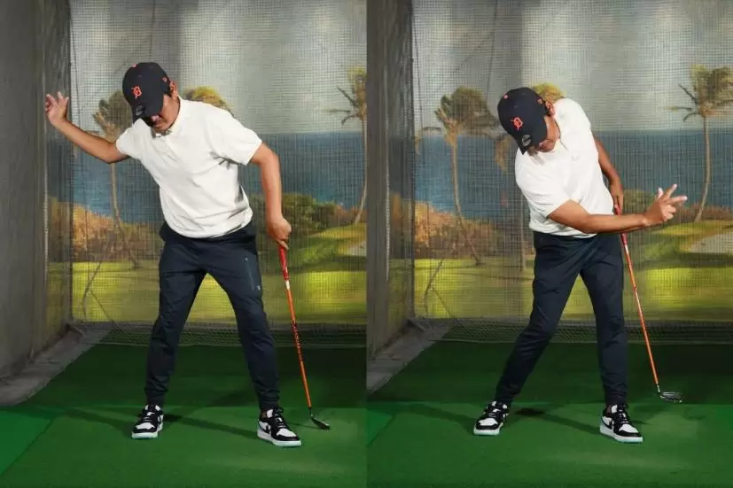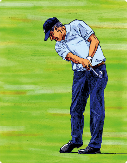 練習法としては、ショートアイアンでハーフショットを繰り返すのがベター。左腰のターンの量と左ヒジの引き付け具合をいろいろ変えて、自分なりの組み合わせ方を探してみよう。