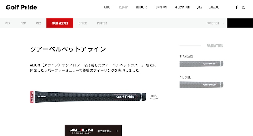 グリップについては、最近の傾向として「アライン」(ゴルフプライド)のように、見た目にも触感としても分かりやすいバックラインが入っているモノもあります。そして今は、PGAツアーのプレーヤーの間でも“バックライン有り”のグリップが流行ってきているとのこと。指の関節にしっかりフィットして「握りやすい」ということから“バックライン有り”のグリップに変更する選手が増えているのが現状です。