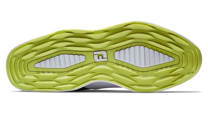 PRO/SLXからインスパイアされたアウトソールが採用されており、様々なコースコンディションに対応可能なアウトソール形状とトラクションパターンだ。特徴的な半円状幅広のトラクションパターンは360度全方位への安定性、特にスイング時の横の動きを制御し安定性を実現した。