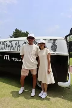 ホワイト×ブラックで高級感漂う大人コーデが完成。キャロウェイ、トラヴィスマシューがとにかく大好きだという奥様の影響を受け、今ではご夫婦でキャロウェイ、トラヴィスマシュー推しに。