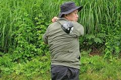 しかし、2サイズアップすれば、ブカブカになる。パットなどのときに、ブカブカのレインウェアはグリップエンドがウェアに当たったりして、ストロークしづらかったり、それよりも、各首回りも緩いので、そこから水が入って防水できないレインウェアになってしまうのだ。