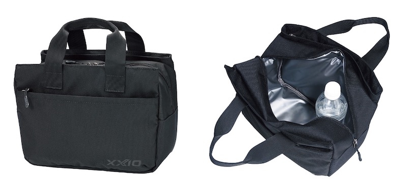 真夏のラウンドから普段使いでもおすすめのスリクソンの保冷ミニトート。500ml のペットボトルが 2 本すっぽり入るチャック式で保冷効果も抜群です。
