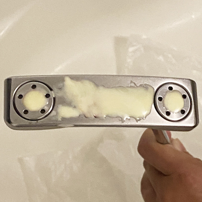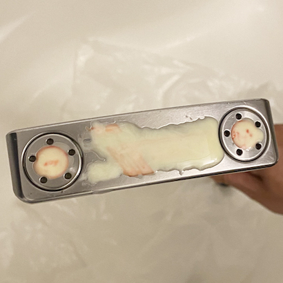 今回は、キャメロンレッドを剥がしました。新たに入れる色は、クリアブルーを選びました。スコッティ・キャメロンパターのような透明感のある塗料は、市販品では、中々ありません。