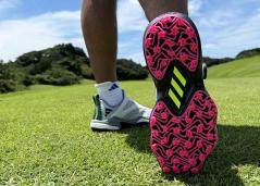 グリップ力に関しては全く不満がないです。ラウンド中に滑ることはなかったし、斜面からのショットでもしっかりとグリップしてくれました。当然ながらスパイクレスですから、硬い地面を歩いていてもスパイクシューズのような突き上げ感はなく歩きやすい。ここまでのグリップ力があったら、もうスパイクシューズでを選ぶ理由があまりないように感じます。