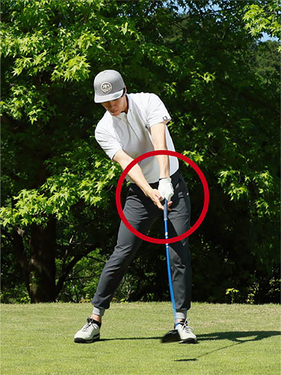 切り返しのときから最大のパワーを出すくらいのイメージで振り下ろす。そうすればパワーの伝達がシャフトを経過し、インパクトで最大のパワーを発揮しやすくなります。シャフトが長いドライバーこそ、この感覚がとても大事です。