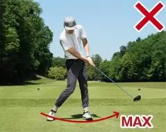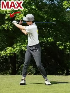 野球のピッチャーが速い球を投げるときは、手の中にボールがあるからリリースした瞬間に出力をマックスにしますよね。その原理はゴルフスイングも一緒で、トップからダウンスイングへと切り返す瞬間にパワーをマックスに持っていく必要があります。