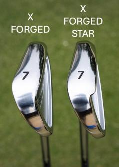 Xフォージドスターアイアン(写真右)/ヘッドサイズは小さめだが、こちらもボールを包み込むような顔をしているので難しさは感じられない。だが、操作性の良さも感じさせるちょうどいい顔。