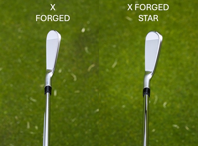 Xフォージドアイアン(写真左)/ヘッド長が短く、トップブレードはシャープ。だが、ネックからフェースへの繋がりに”懐”があるので球をつかまえやすそうな顔と言える。