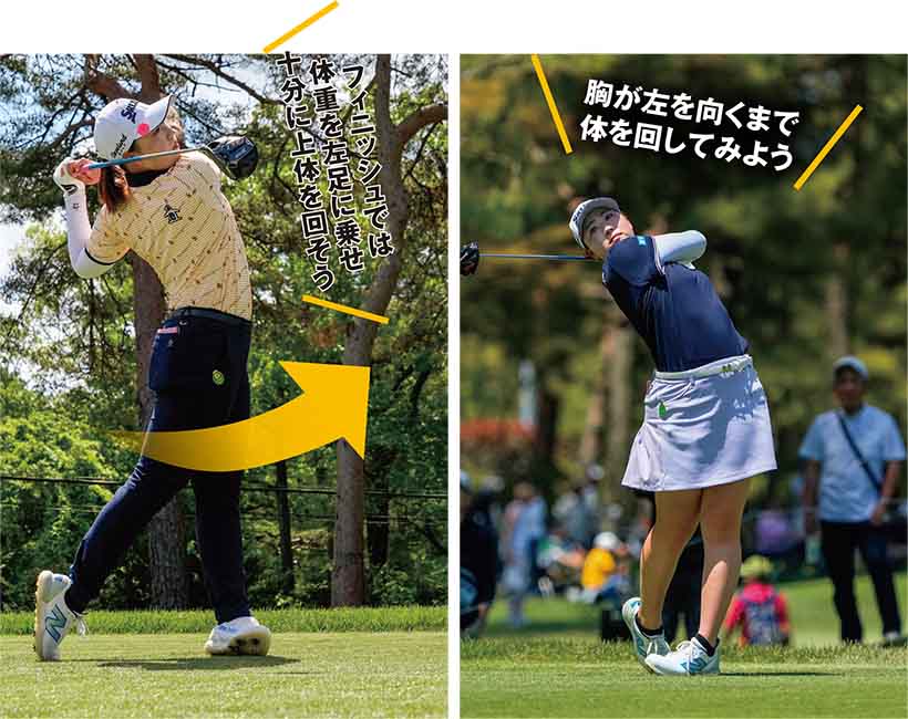 フィニッシュでは体重を左足に乗せ十分に上体を回そう