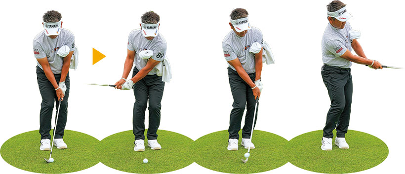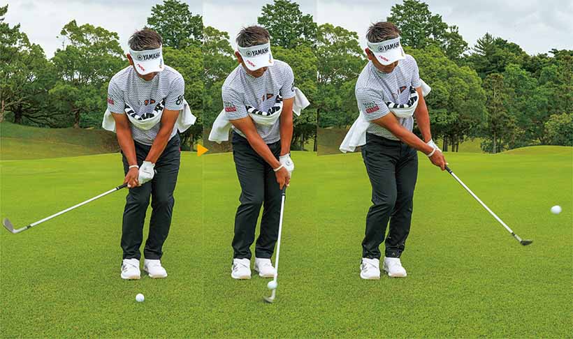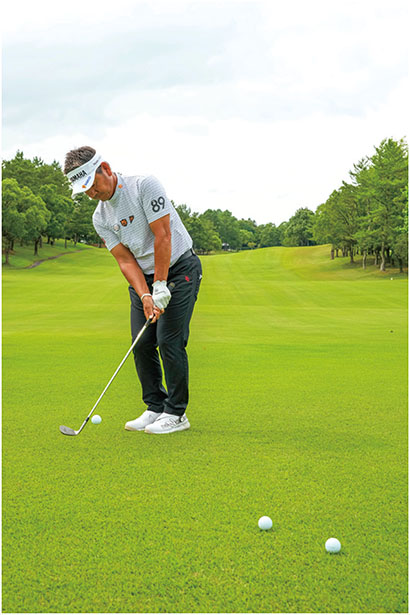 この練習として私は、ウェッジで「2~3ヤードのキャリー」を目安に何球も続けて打ちます。ランも含めてボールがほぼ同じところに止まればOK。振り幅が小さくなると、ごまかしが利かず、スイングの良し悪しが結果に顕著に現れます。そして、番手を替えながら同じように打ちます。これをくり返すと繊細なフィーリングを養うことができ、ショットの精度が向上します。