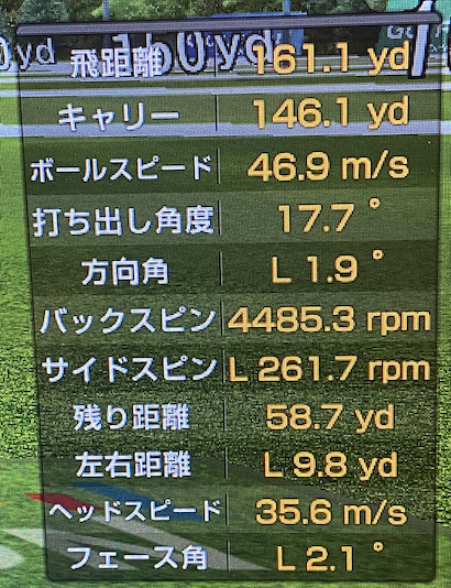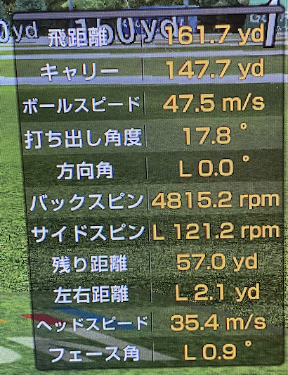 ドローで打った時の飛距離:161.7ヤード(ヘッドスピード:35.4m/s)